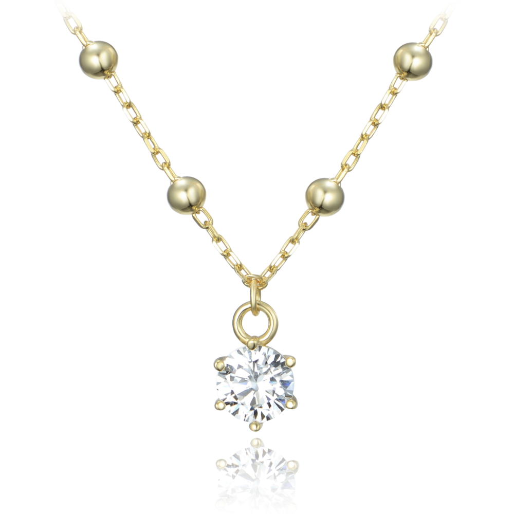 MINET Pozlacený stříbrný náhrdelník s kuličkami a bílým zirkonem