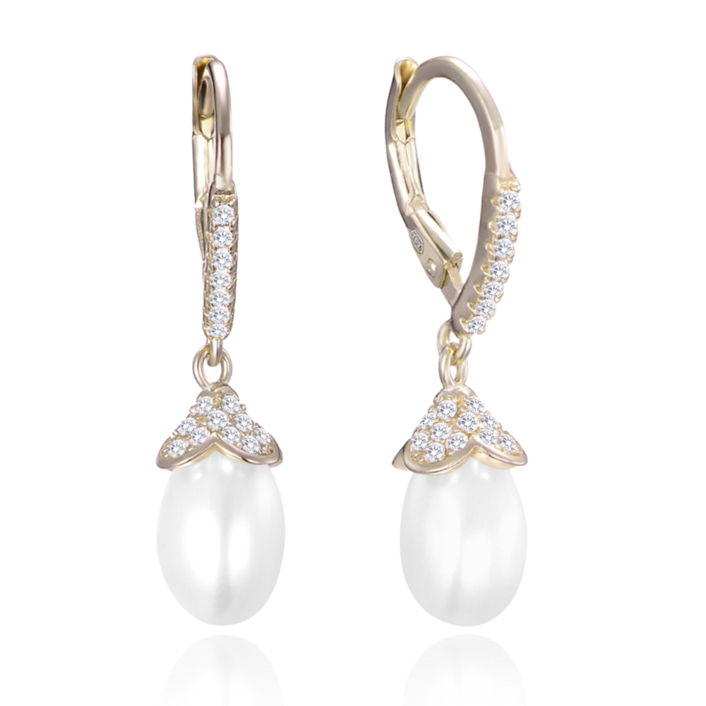 MINET Pozlacené stříbrné náušnice s přírodními perlami a zirkony