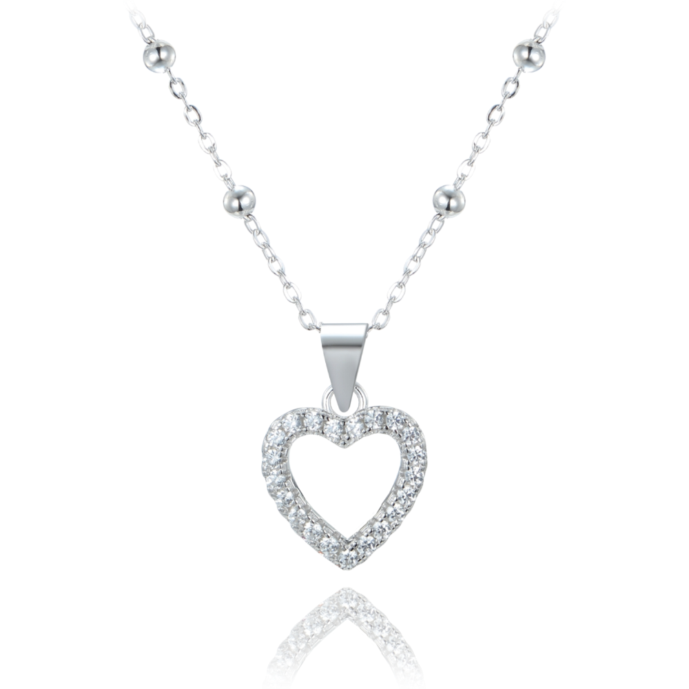 MINET Stříbrný náhrdelník srdce s bílými zirkony