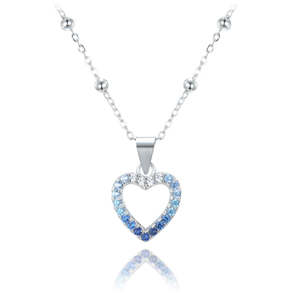 MINET Stříbrný náhrdelník srdce se zirkony v modrých odstínech