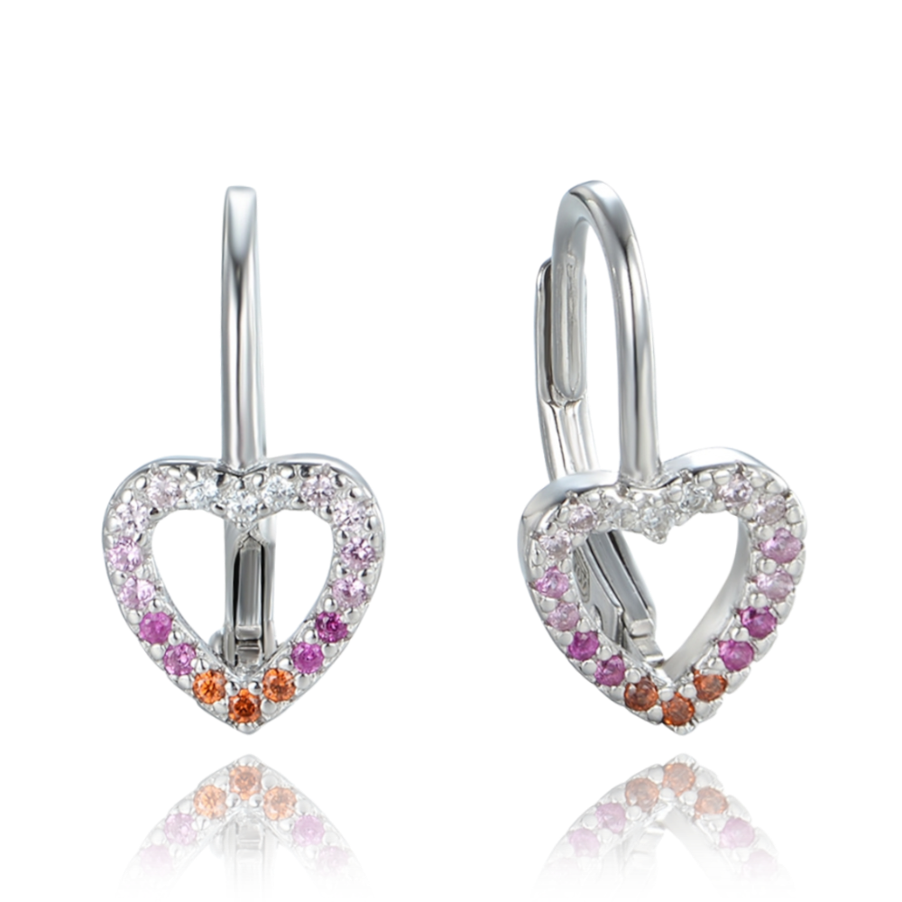MINET Stříbrné náušnice srdce se zirkony v červených odstínech
