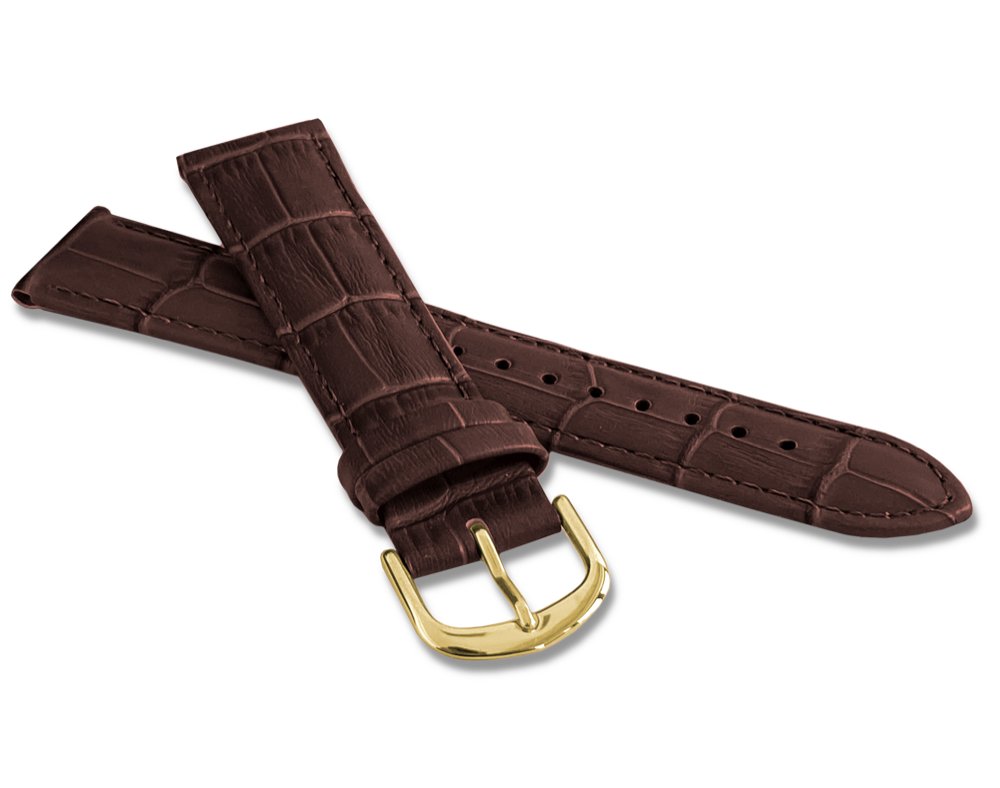 Tmavě hnědý prošitý řemínek CROCO se zlatou sponou - 14