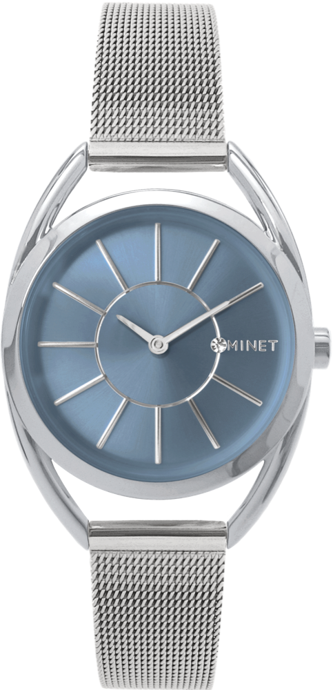 Elegantní hodinky české značky MINET s modrým číselníkem a moderním ocelovým řemínkem milánského typu ve stříbrné barvě. Vyměnitelný řemínek se snadným systémem zkracování se přizpůsobí obvodu ruky. Hodinky jsou vyrobeny z hypoalergenní nerezové oceli.
