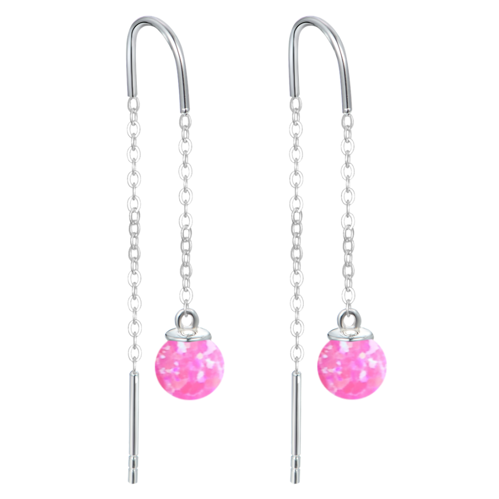 MINET Stříbrné náušnice hanging balls s růžovými opálky a zirkonem