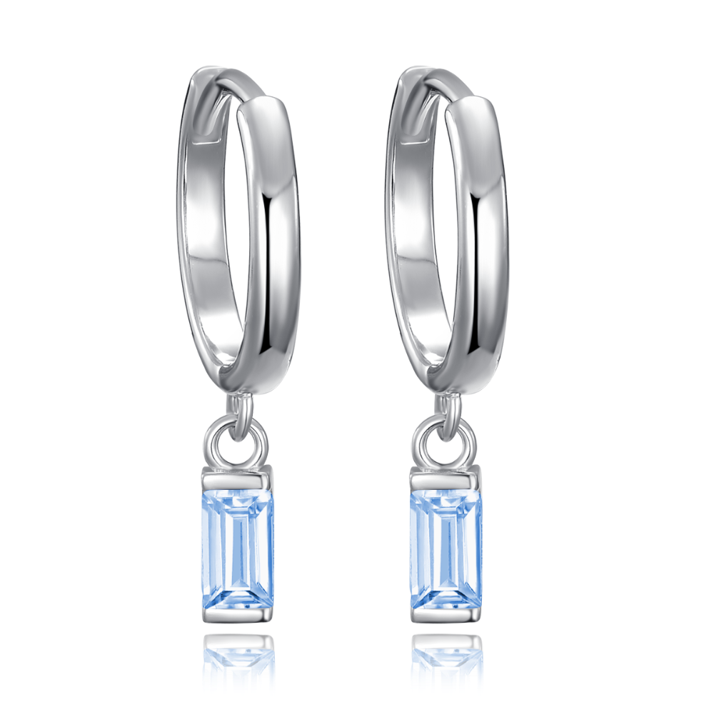 MINET Stříbrné náušnice kroužky s visícími modrými zirkony