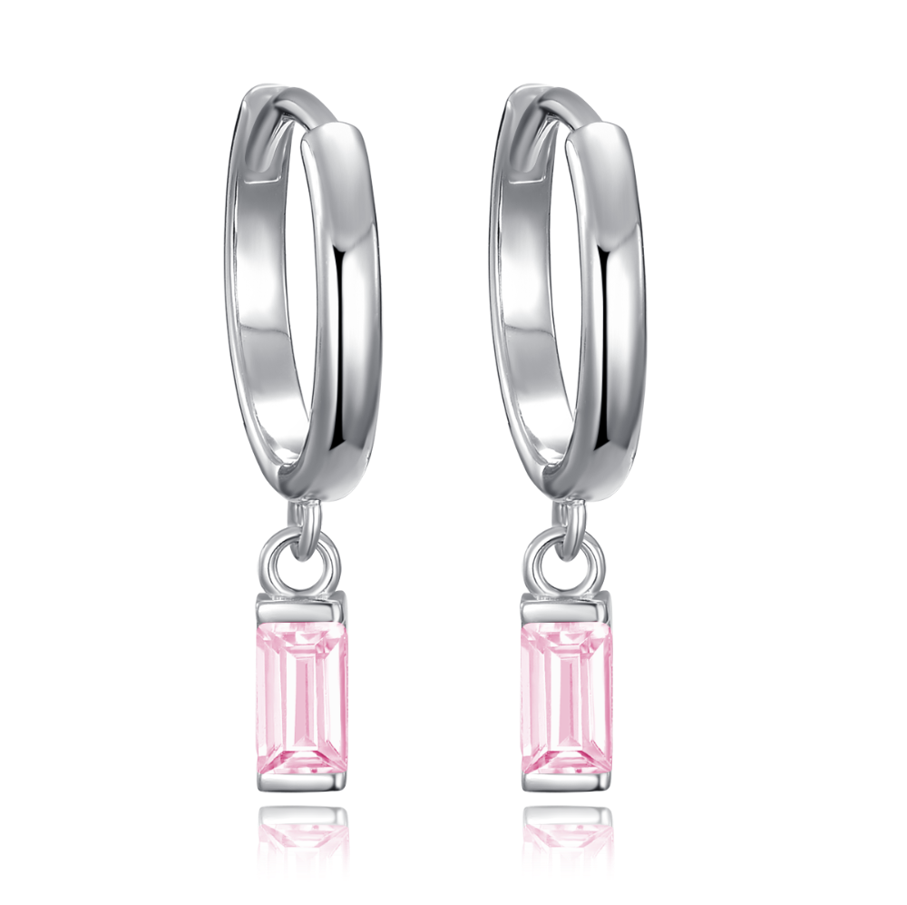 MINET Stříbrné náušnice kroužky s visícími růžovými zirkony