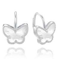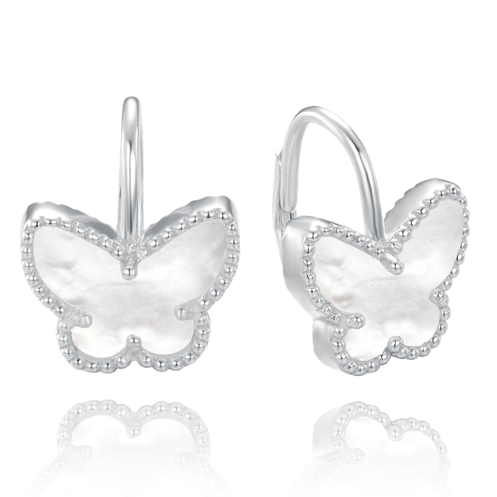 MINET Stříbrné náušnice motýlci s bílou perletí