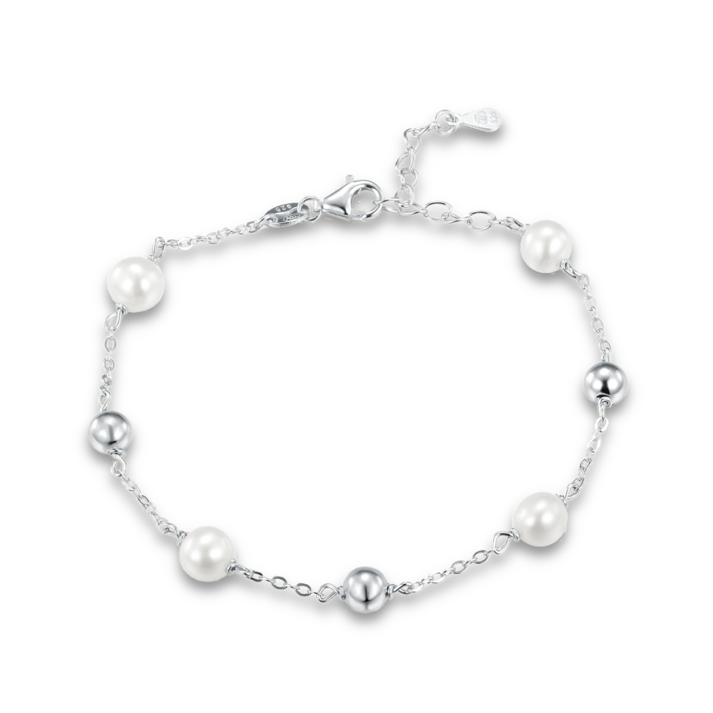 MINET Stříbrný náramek s kuličkami a přírodními perlami