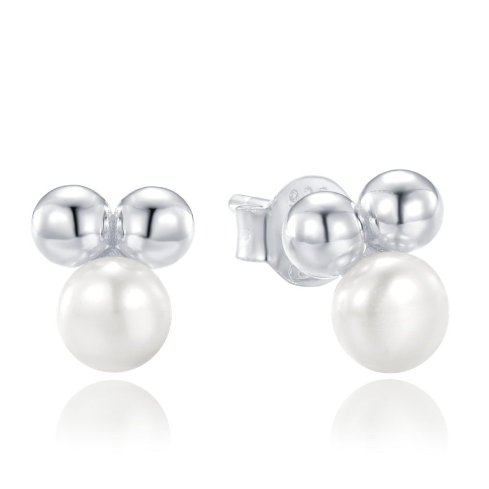 MINET Stříbrné náušnice s kuličkami a přírodními perlami