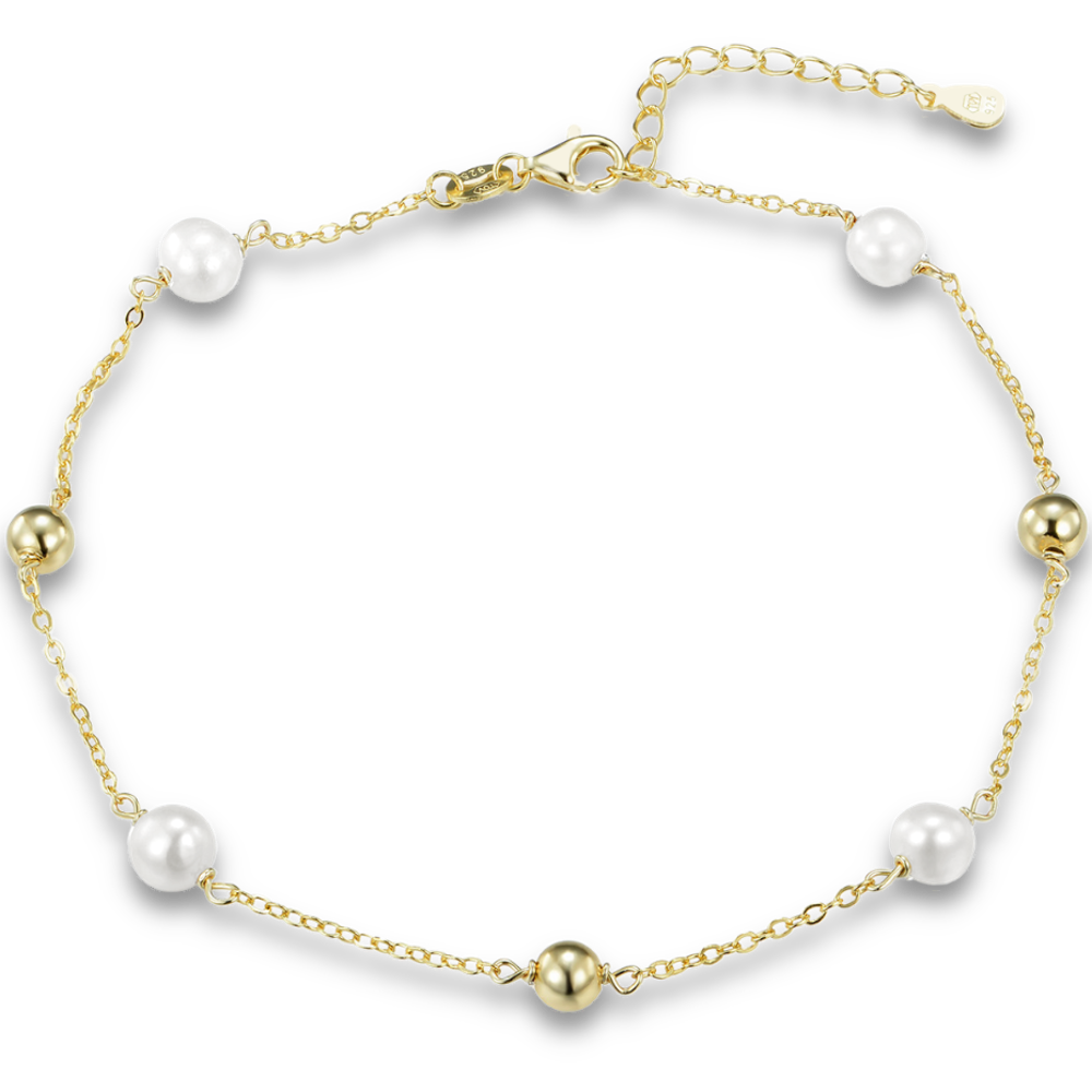 MINET Pozlacený stříbrný řetízek na kotník s kuličkami a přírodními perlami
