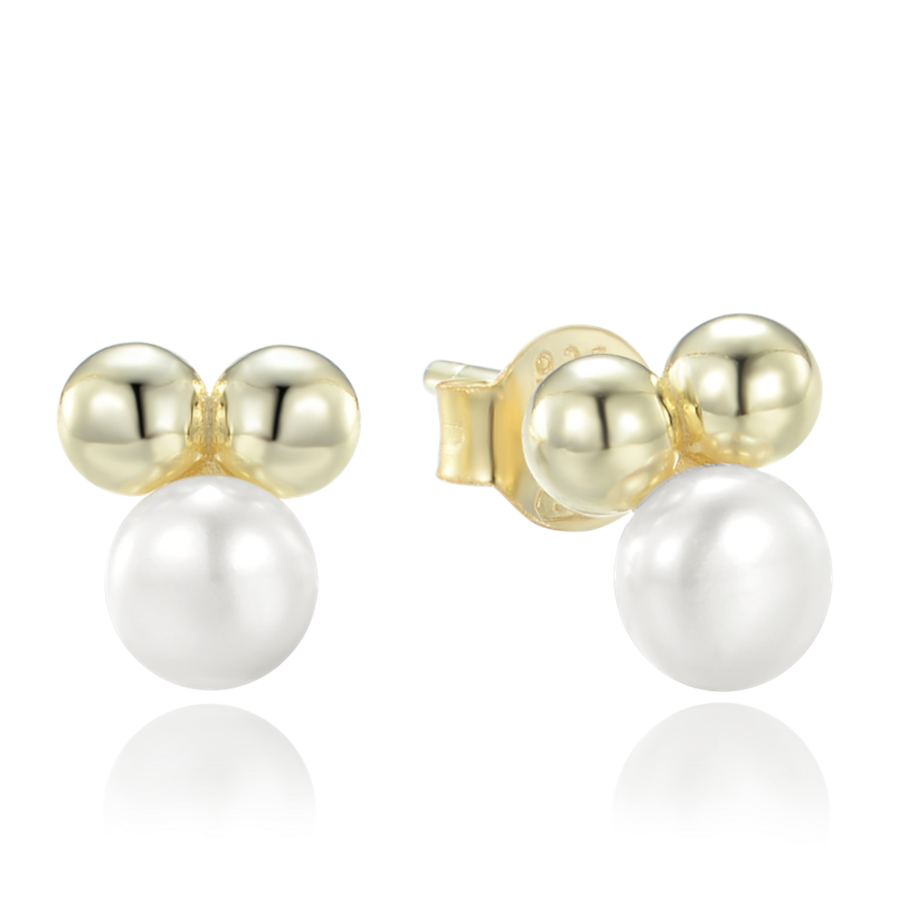 MINET Pozlacené stříbrné náušnice s kuličkami a přírodními perlami