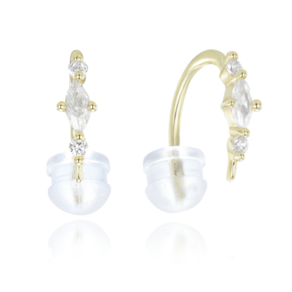 MINET Pozlacené elegantní stříbrné protahovací náušnice s bílými zirkony