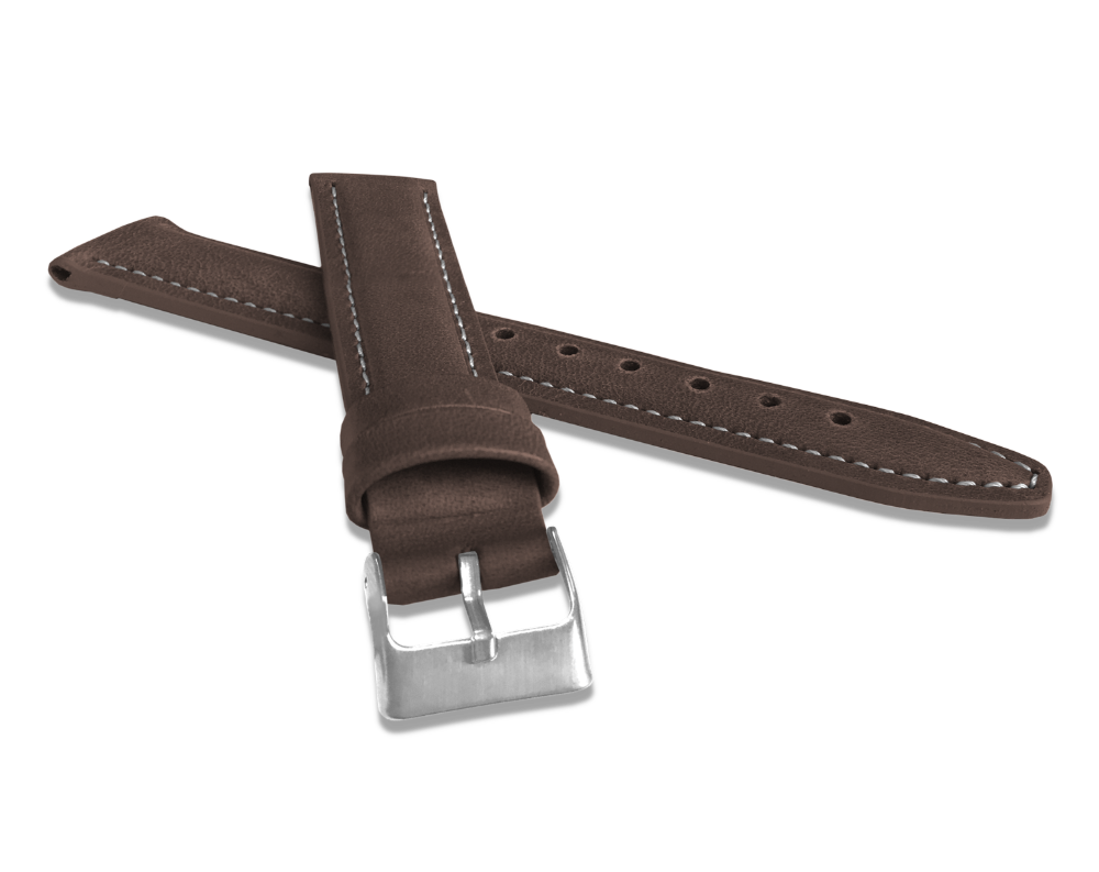 LAVVU Polstrovaný tmavě hnědý prošitý řemínek CLASSIC z luxusní kůže Top Grain - 24