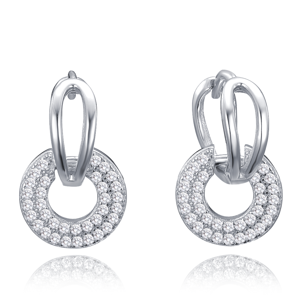 MINET Luxusní stříbrné náušnice dvojité kroužky s bílými zirkony
