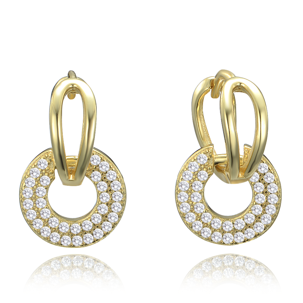 MINET Luxusní pozlacené stříbrné náušnice dvojité kroužky s bílými zirkony