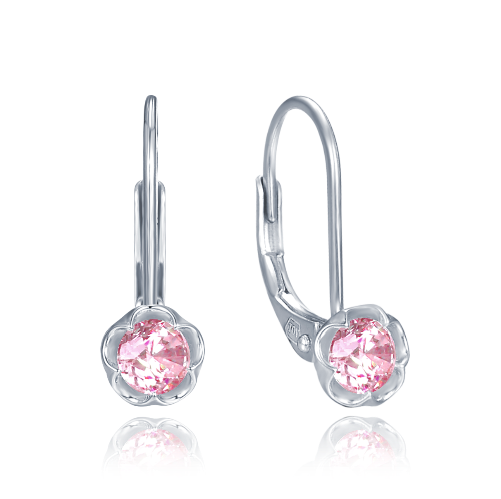MINET Dětské stříbrné náušnice kytičky s růžovými zirkony