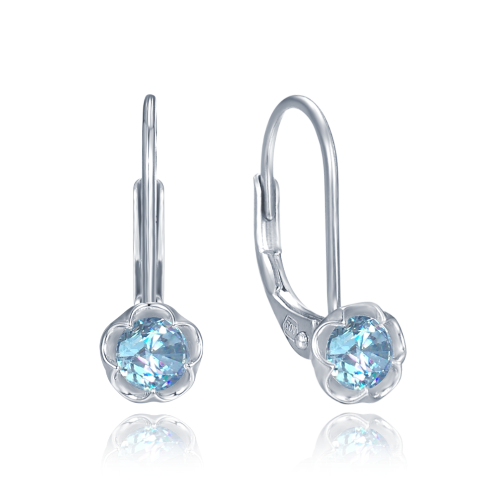 MINET Dětské stříbrné náušnice kytičky s modrými zirkony