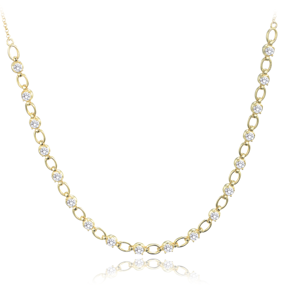 MINET Elegantní pozlacený stříbrný náhrdelník s bílými zirkony