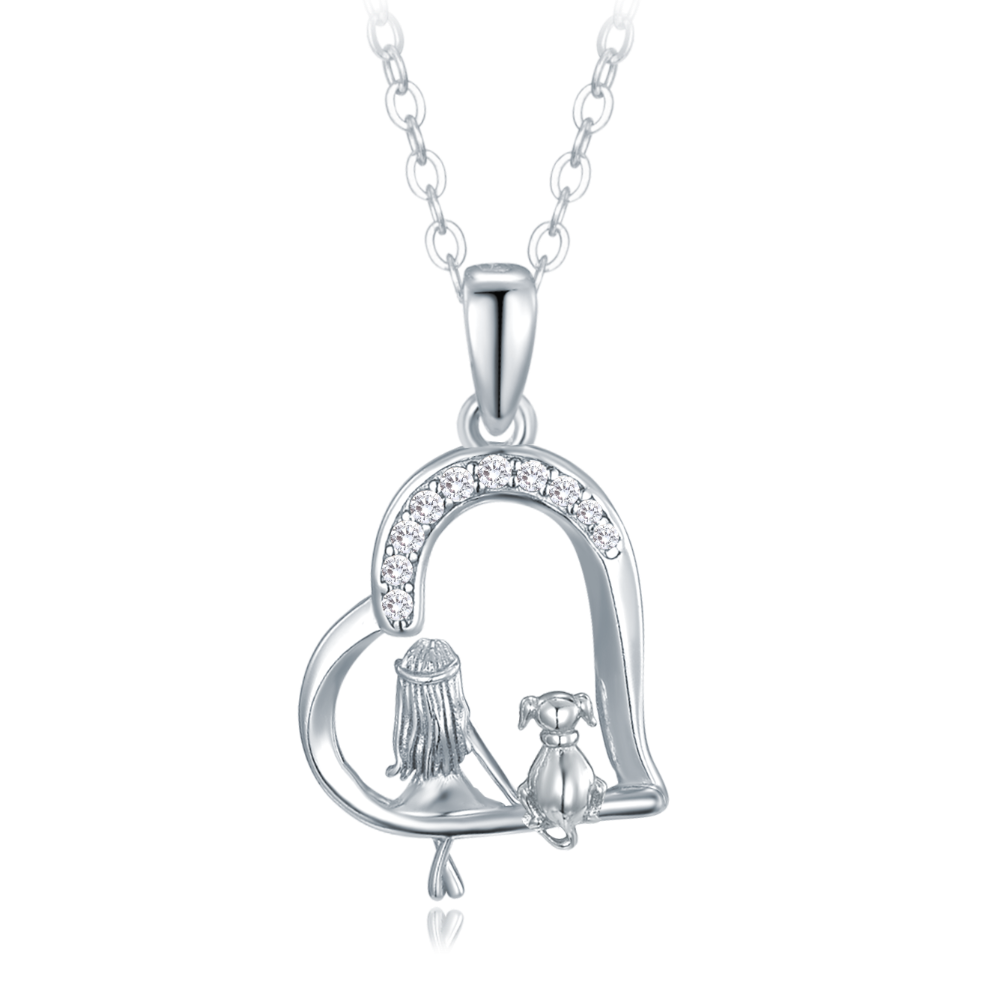 MINET Stříbrný náhrdelník dívka se psem a bílými zirkony