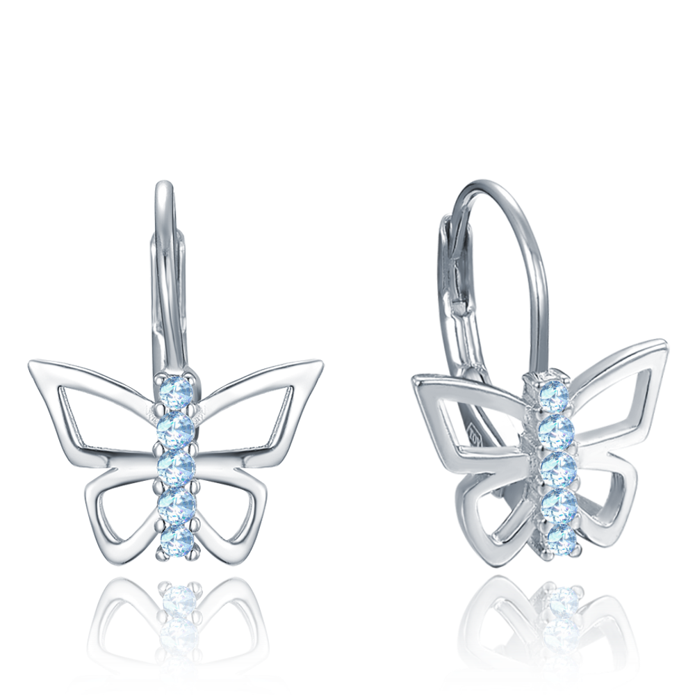 Náušnice jsou na hřbetu a hlavě motýla zdobené třpytivými zirkony.