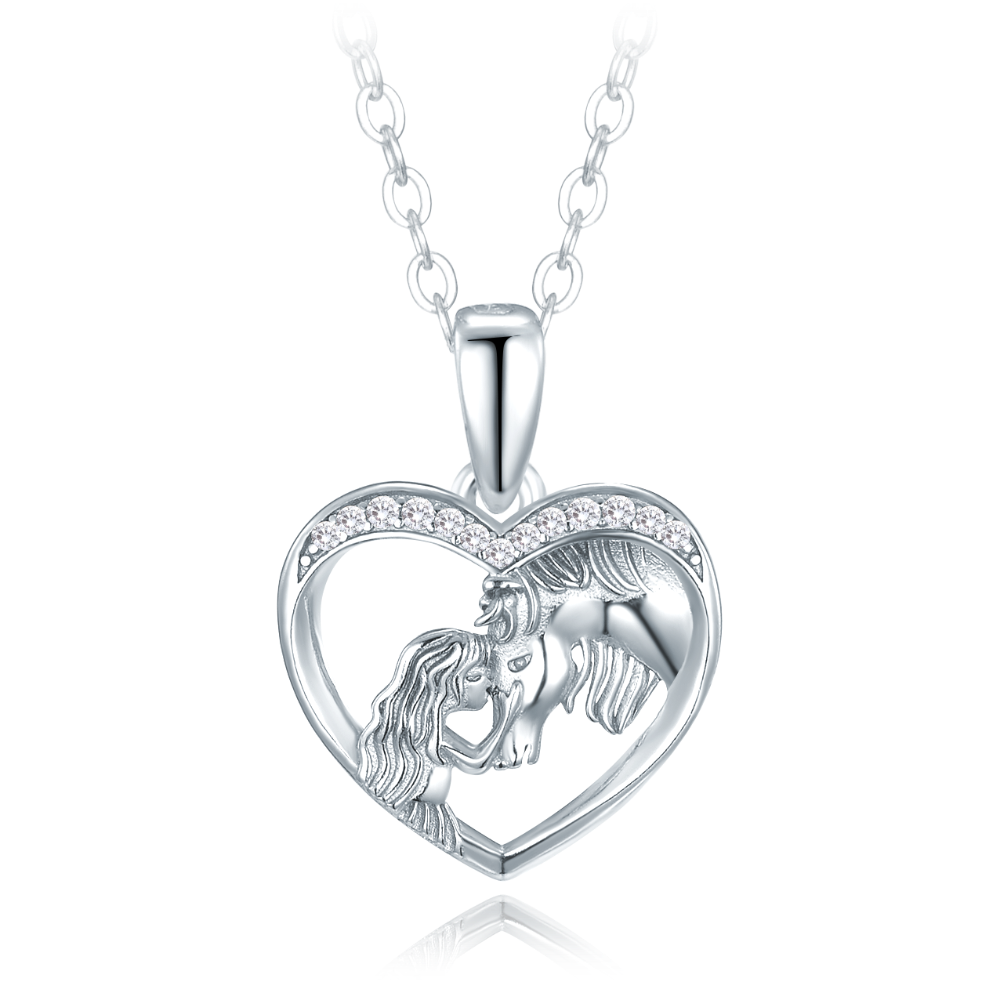 MINET Stříbrný náhrdelník dívka s koněm a bílými zirkony