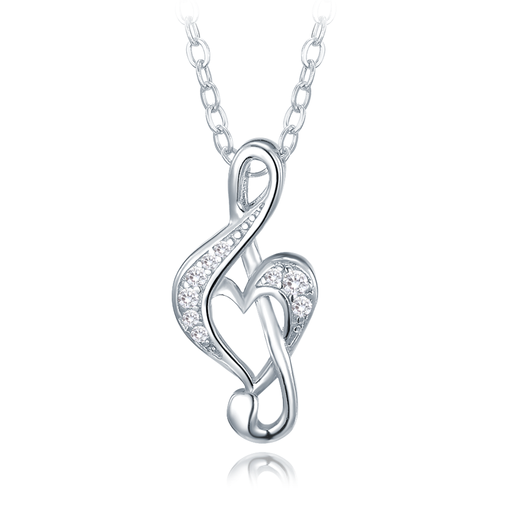 MINET Stříbrný náhrdelník houslový klíč s bílými zirkony