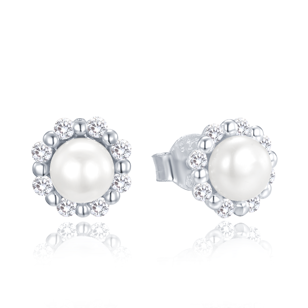MINET Stříbrné náušnice s přírodními perlami a zirkony