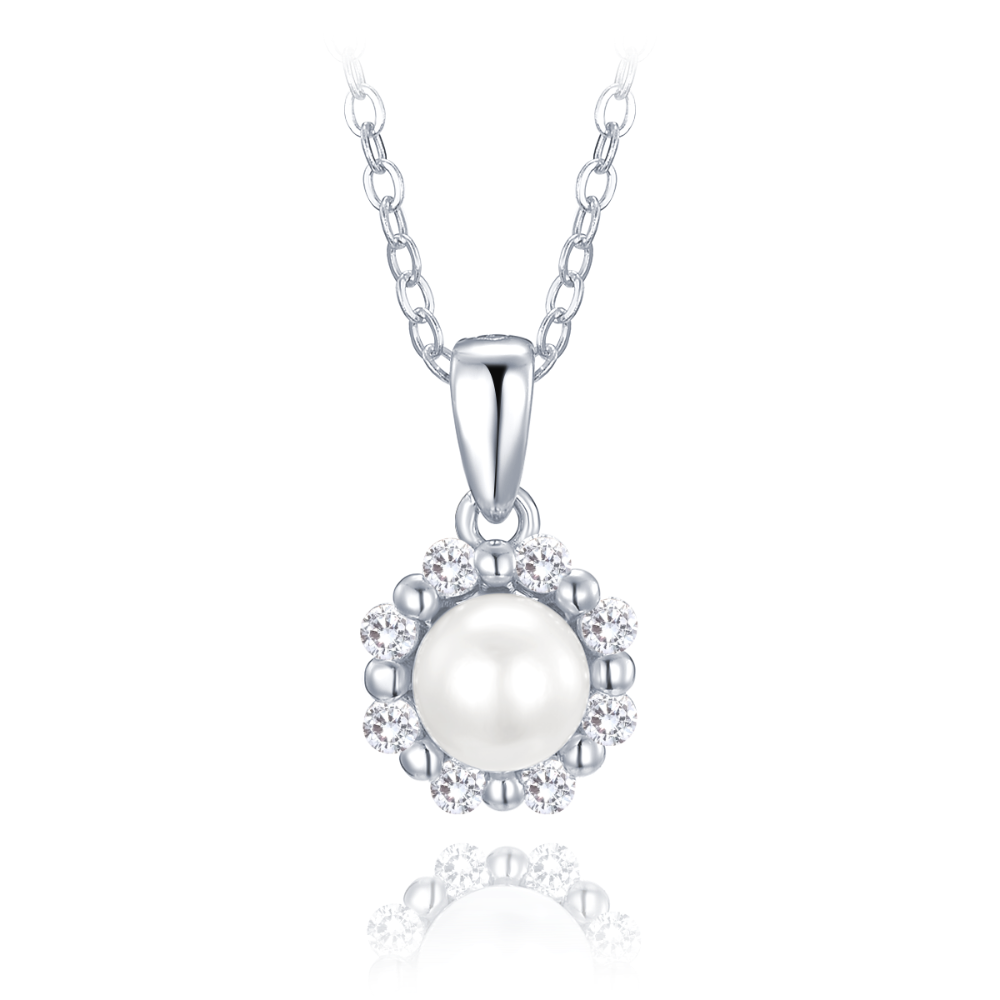 MINET Stříbrný náhrdelník s přírodní perlou a bílými zirkony