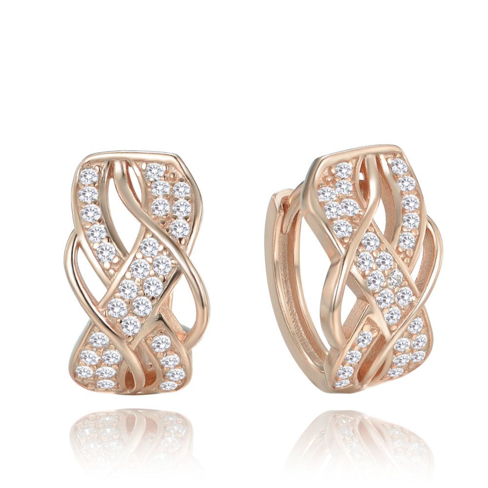 MINET Luxusní Rosegold stříbrné náušnice kroužky s bílými zirkony