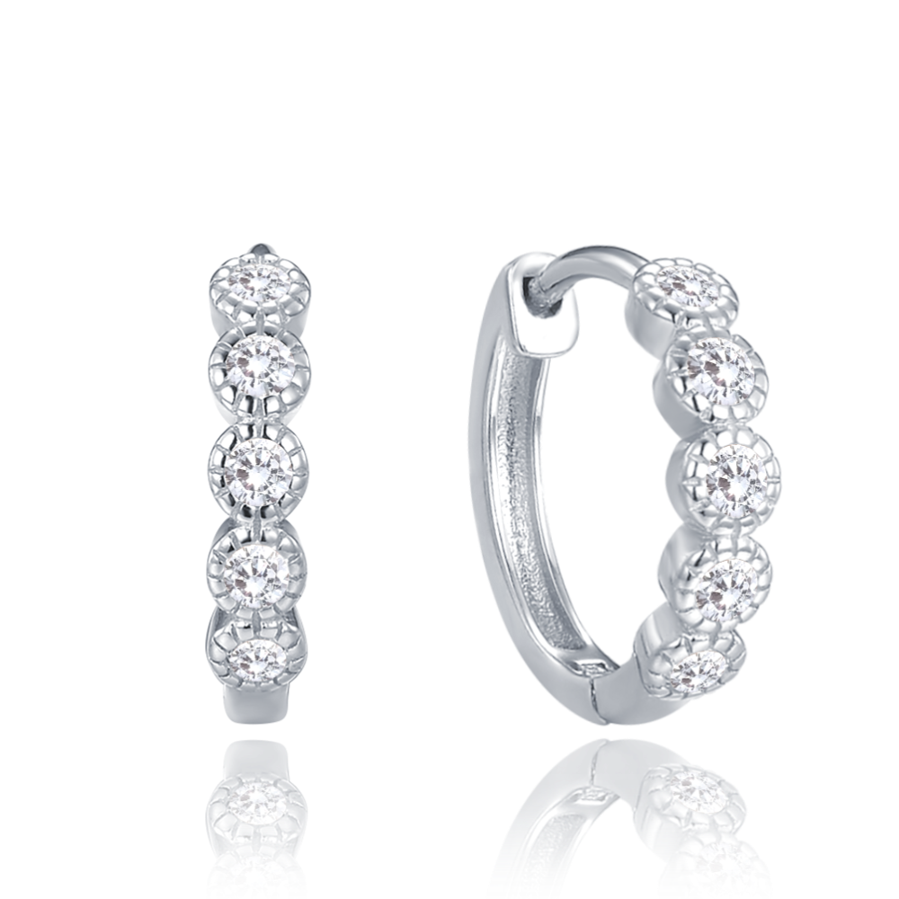 MINET Dětské stříbrné náušnice kroužky s bílými zirkony