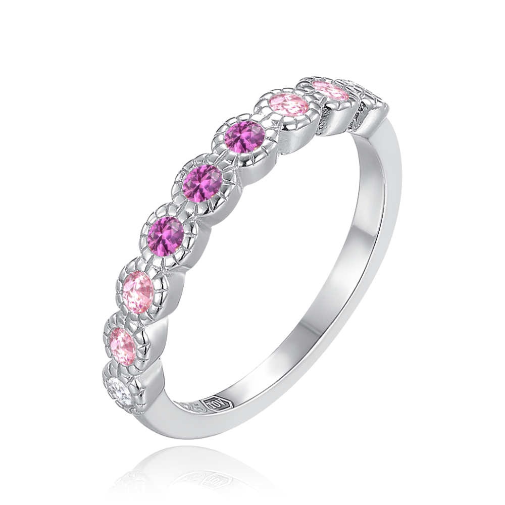MINET Dětský stříbrný prsten s bílými, růžovými a červenými zirkony vel. 52