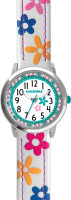 CLOCKODILE Bílé dívčí dětské hodinky s kamínky a kytičkami