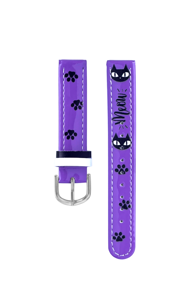 CLOCKODILE Fialový řemínek k dětským hodinkám kočky