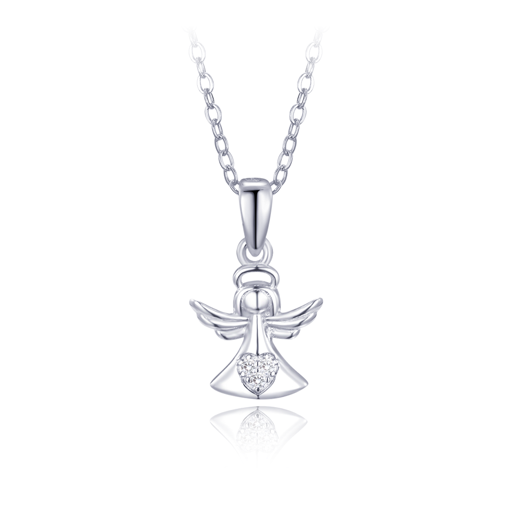 MINET Stříbrný náhrdelník anděl s bílými zirkony