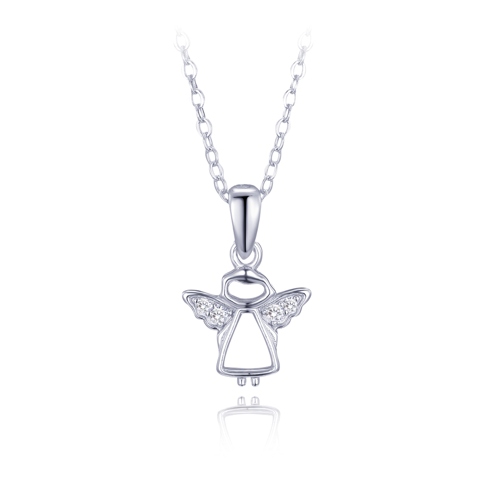 MINET Stříbrný náhrdelník anděl s bílými zirkony
