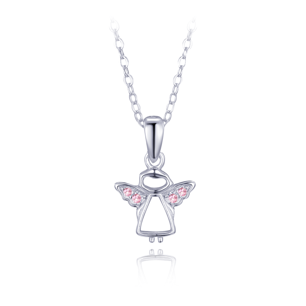 MINET Stříbrný náhrdelník anděl s růžovými zirkony