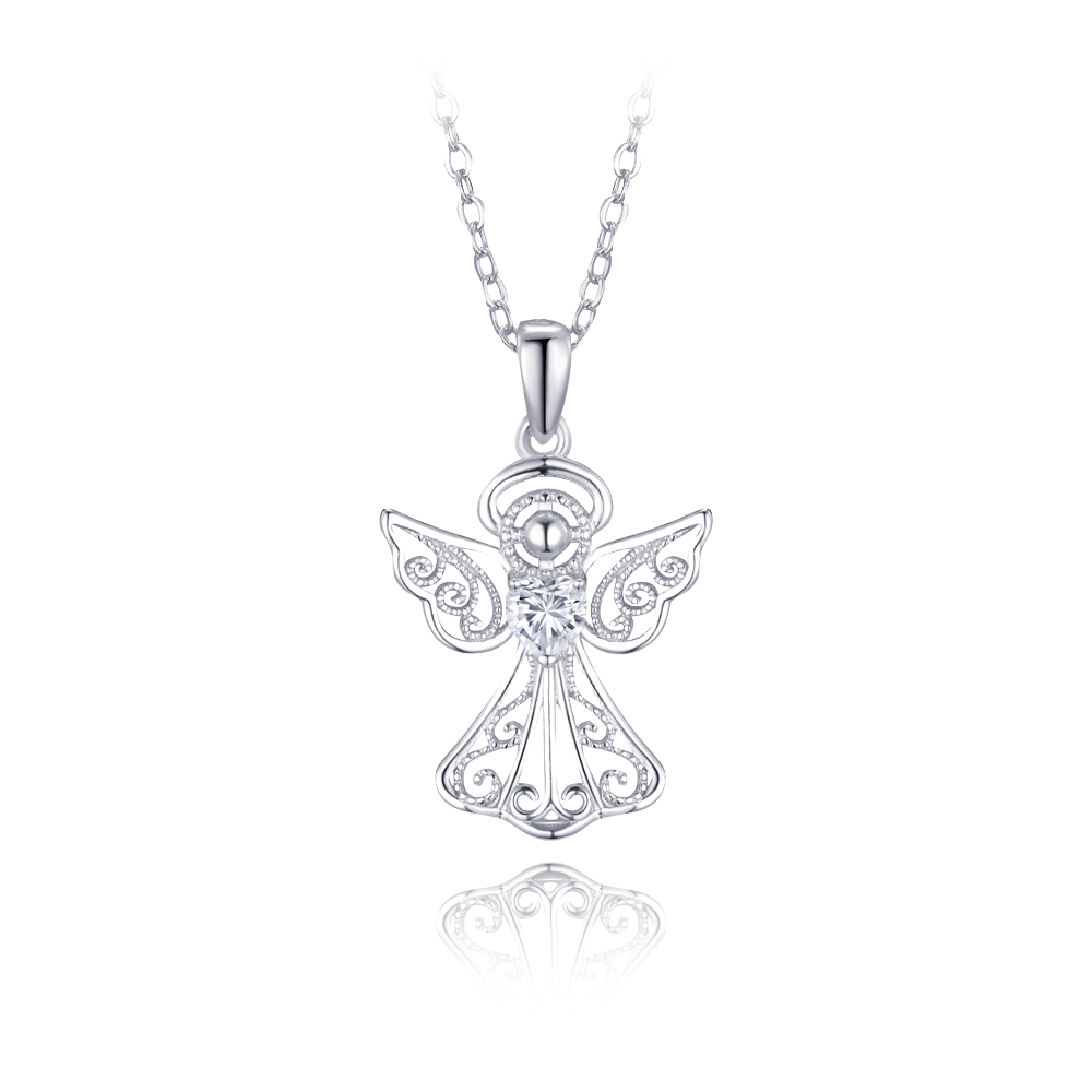 MINET Stříbrný náhrdelník anděl s bílým zirkonem