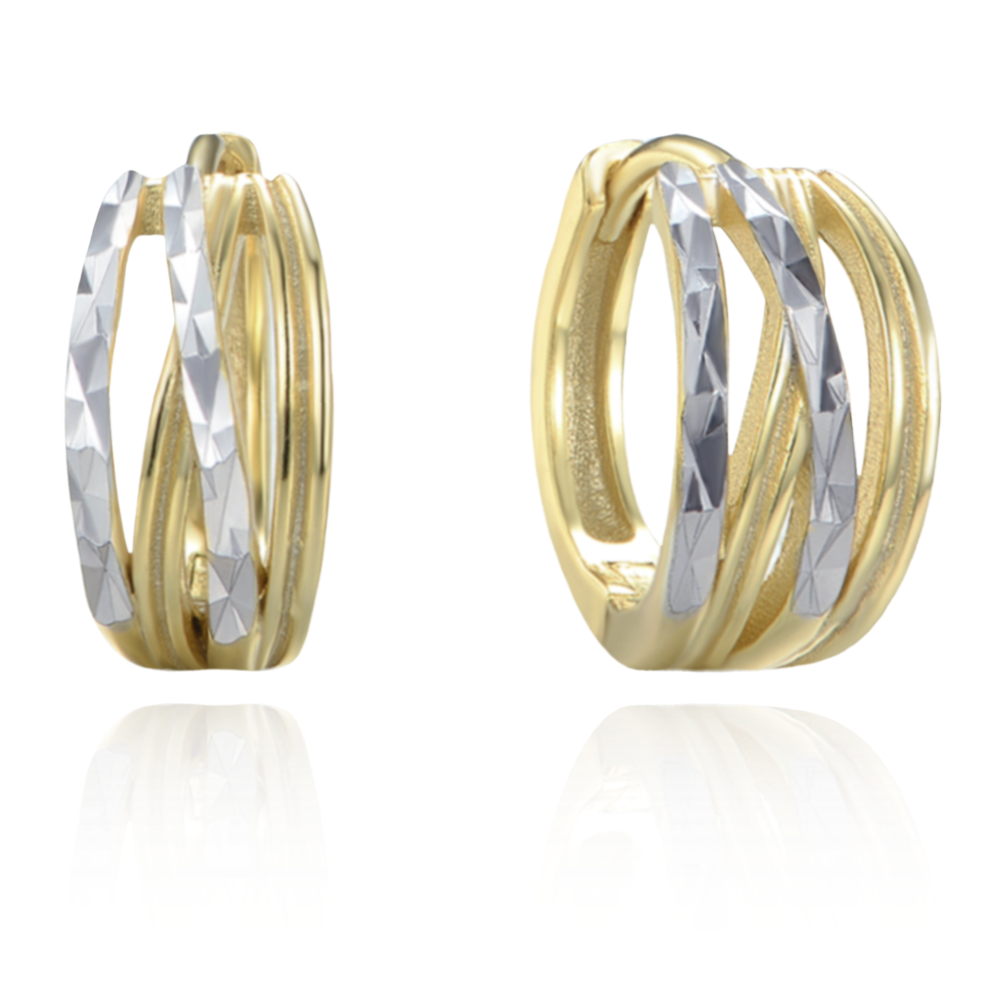 MINET Dvoubarevné broušené stříbrné náušnice kroužky