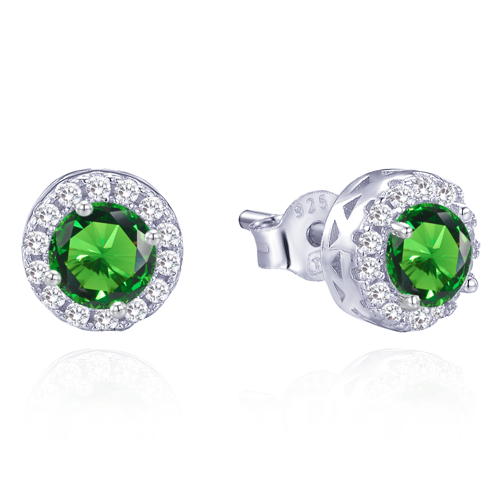 MINET Elegantní stříbrné náušnice s bílými a zelenými zirkony