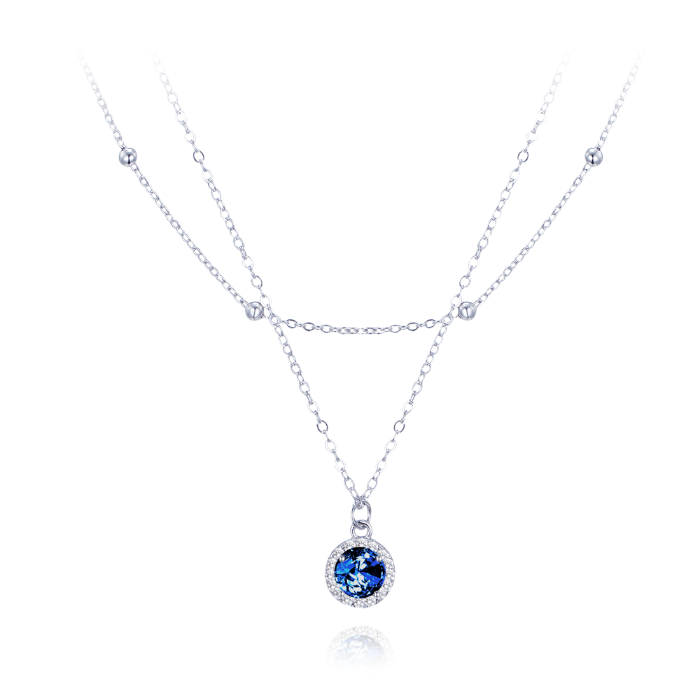 MINET Dvojitý stříbrný náhrdelník s bílými a modrými zirkony