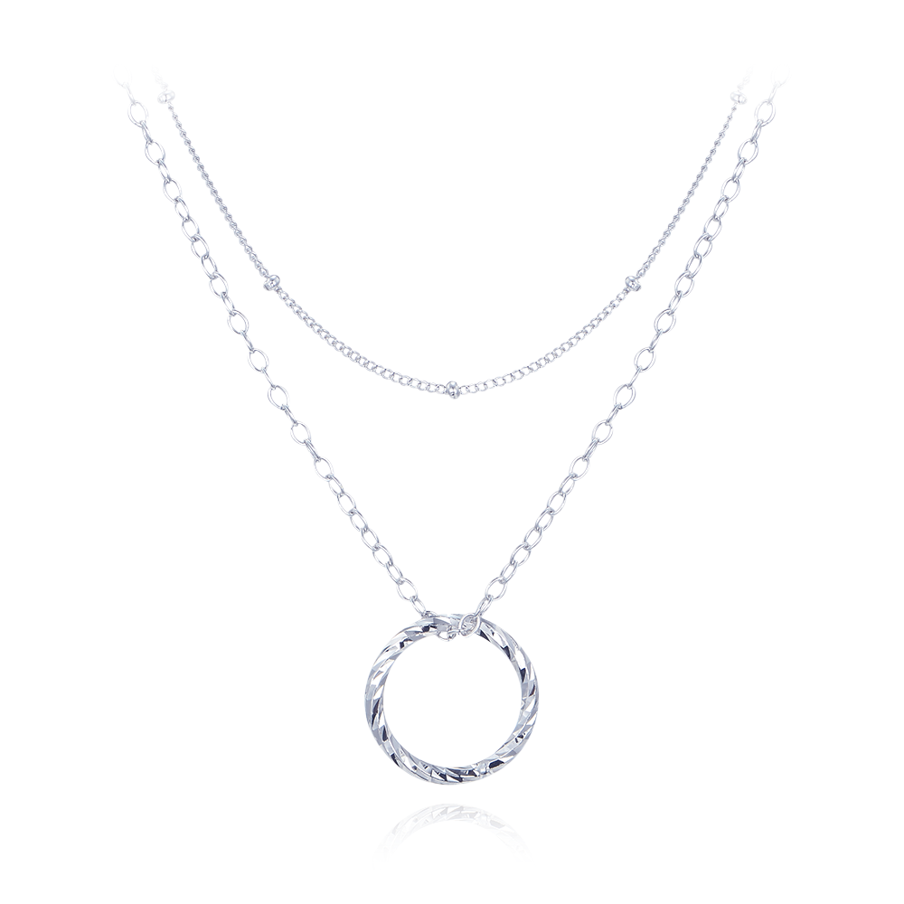 MINET Dvojitý stříbrný náhrdelník s kuličkami a kroužkem