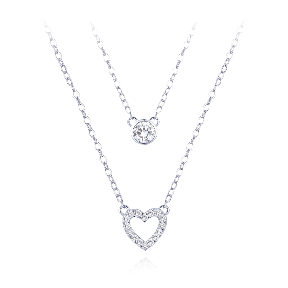 MINET Dvojitý stříbrný náhrdelník se srdcem a bílými zirkony