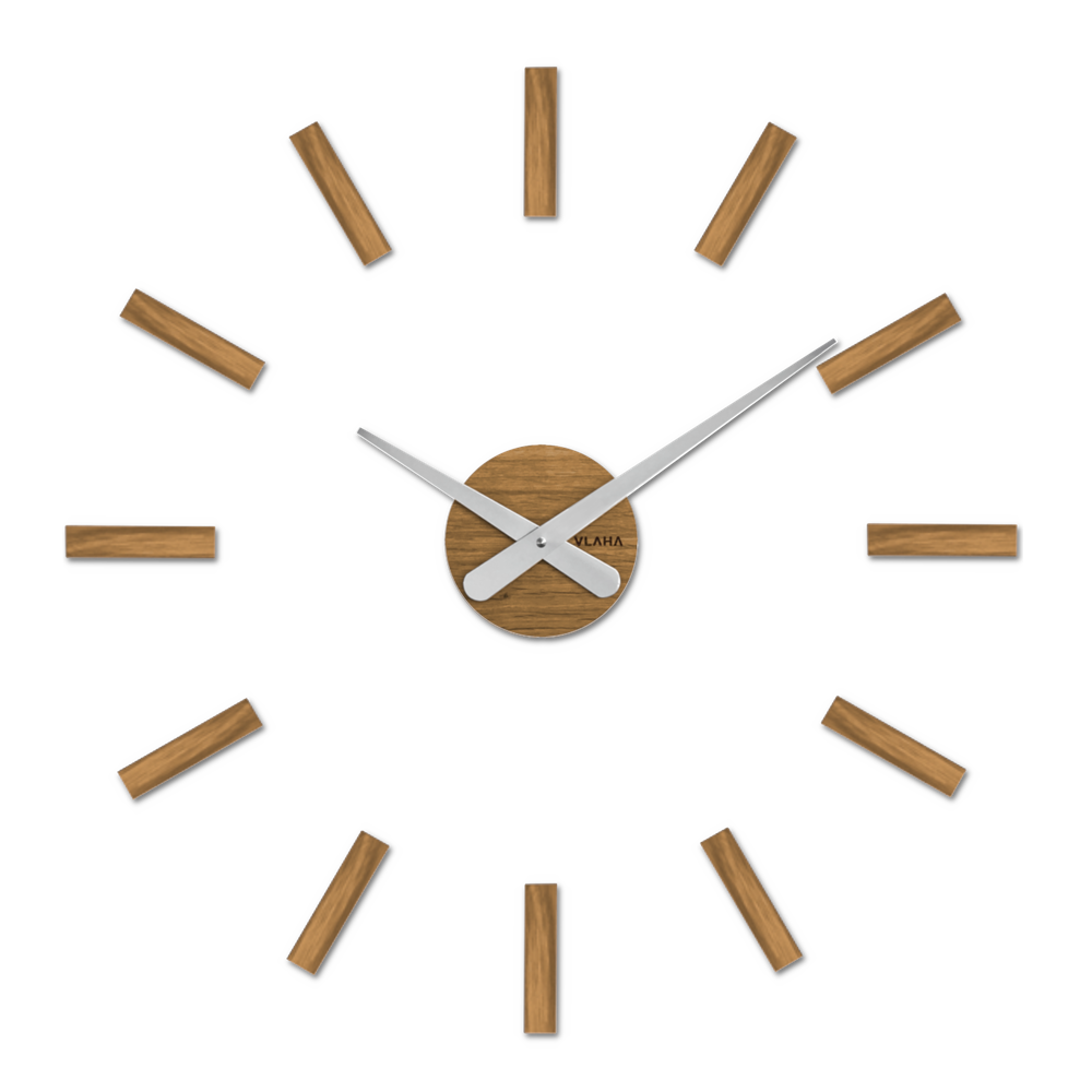 VLAHA Dubové nalepovací hodiny MINIMAL vyrobené v Čechách se stříbrnými ručkami ⌀59cm