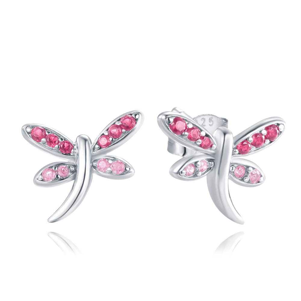 MINET Stříbrné náušnice vážky se světle a tmavě růžovými zirkony