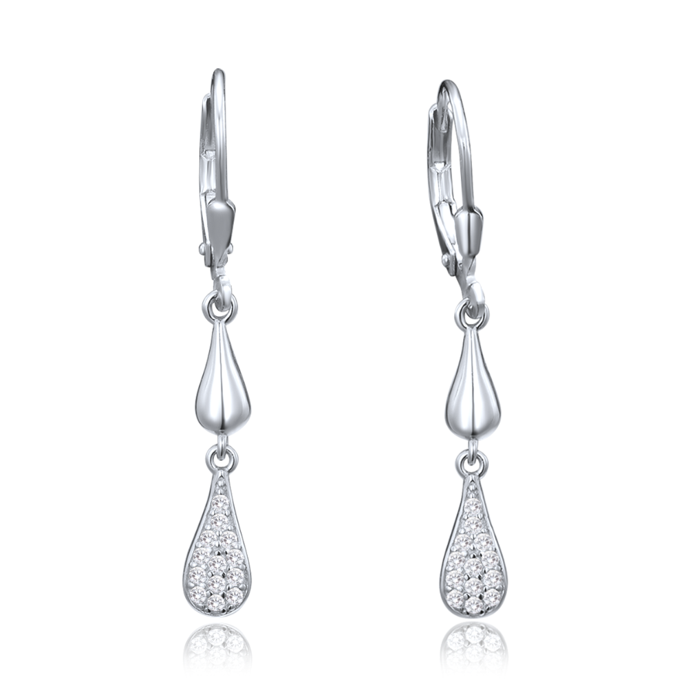 MINET Luxusní stříbrné náušnice s bílými zirkony