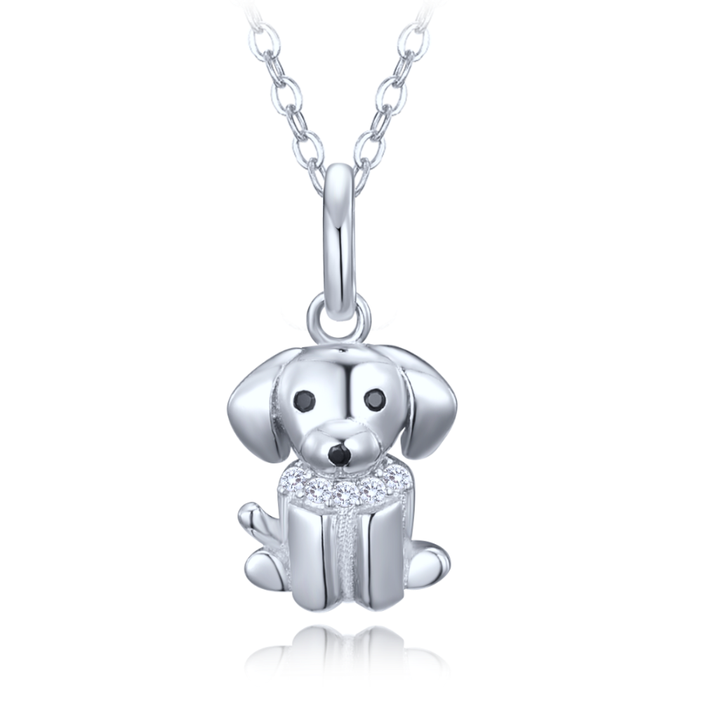 MINET Dětský stříbrný náhrdelník pejsek s bílými a černými zirkony