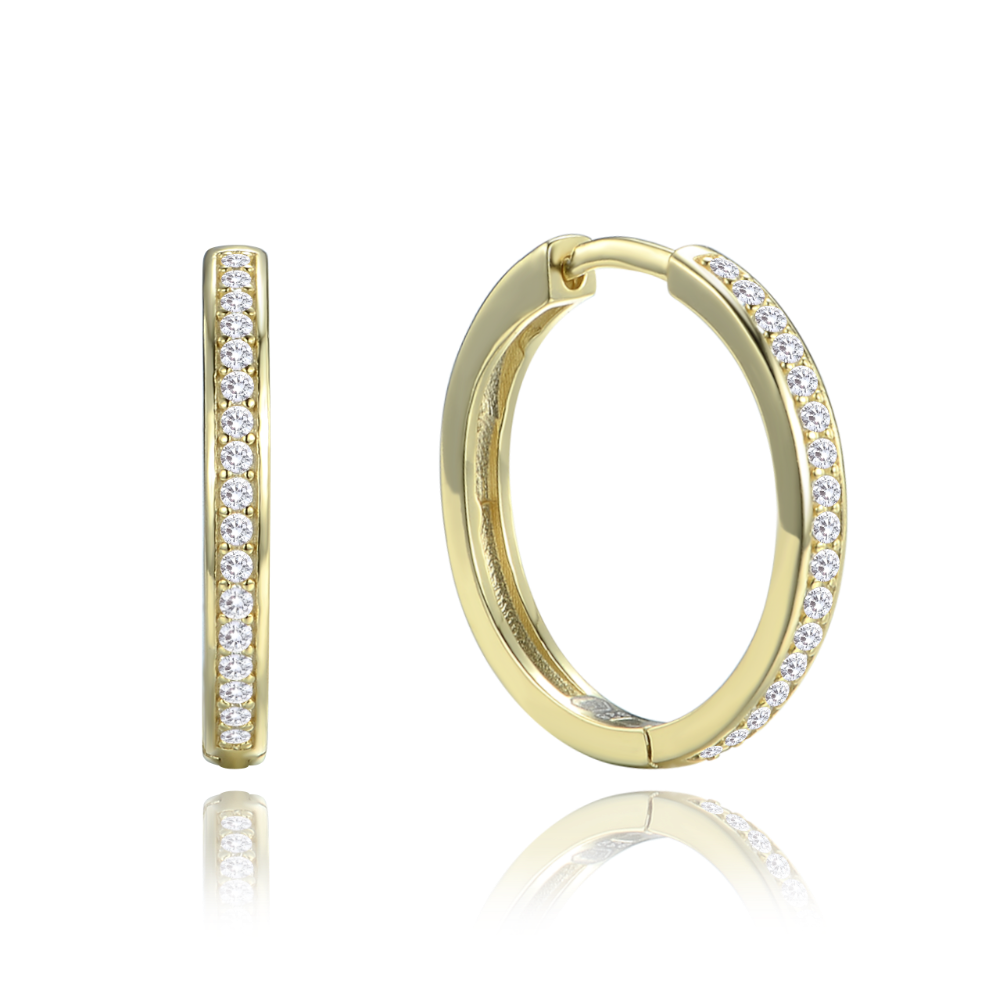 MINET Pozlacené stříbrné náušnice hranaté kruhy 2 cm s bílými zirkony