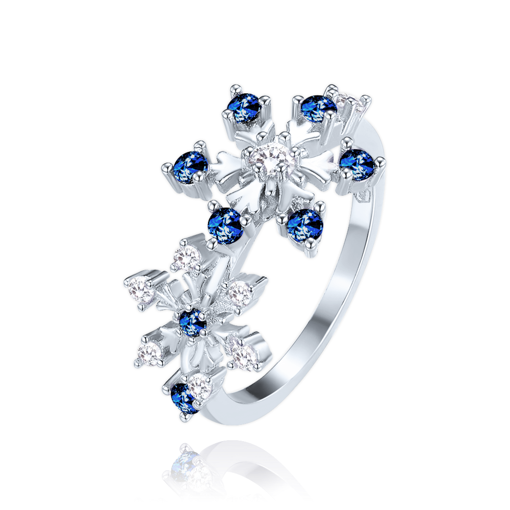 MINET Stříbrný prsten sněhová vločka s bílými a modrými zirkony vel. 53