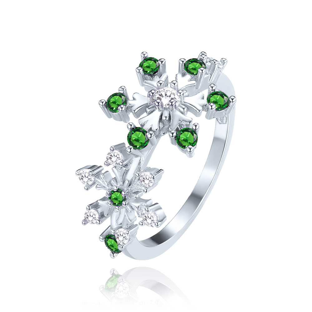 MINET Stříbrný prsten sněhová vločka s bílými a zelenými zirkony vel. 55
