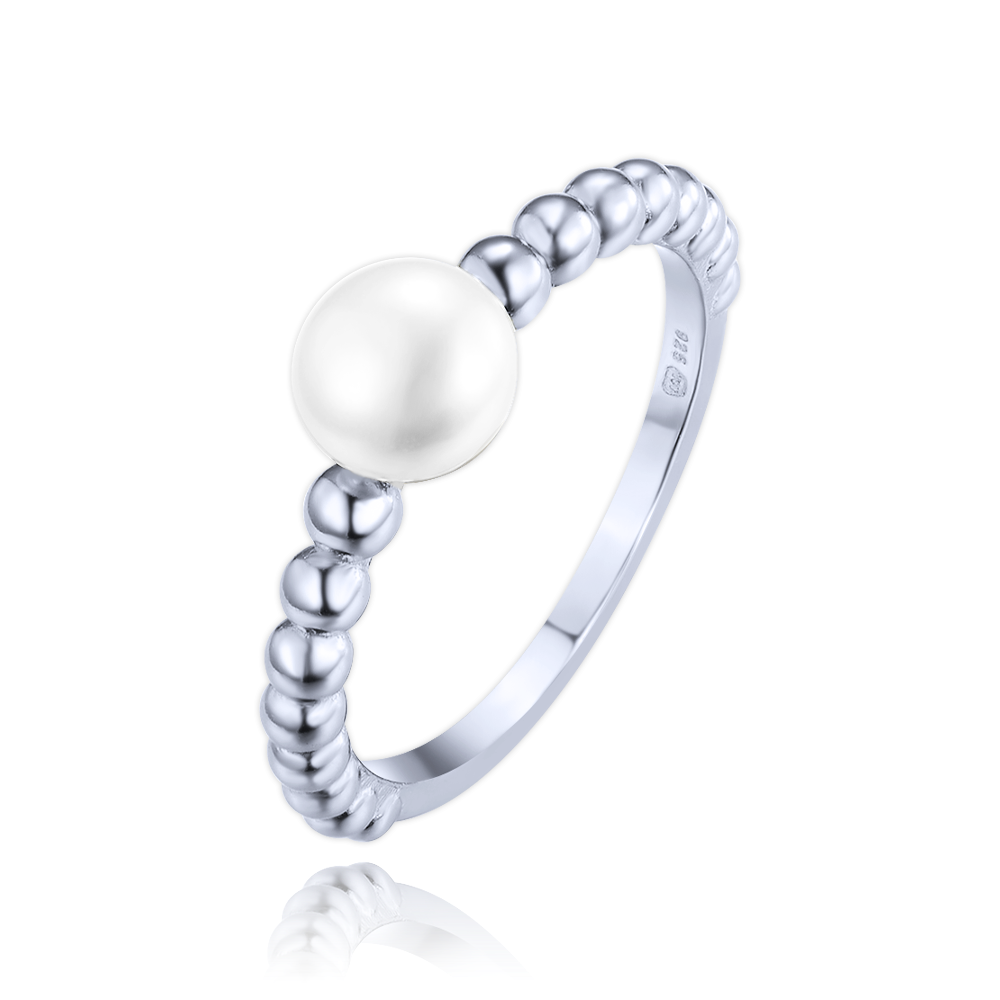 MINET Stříbrný prsten s perlou a kuličkami vel. 57